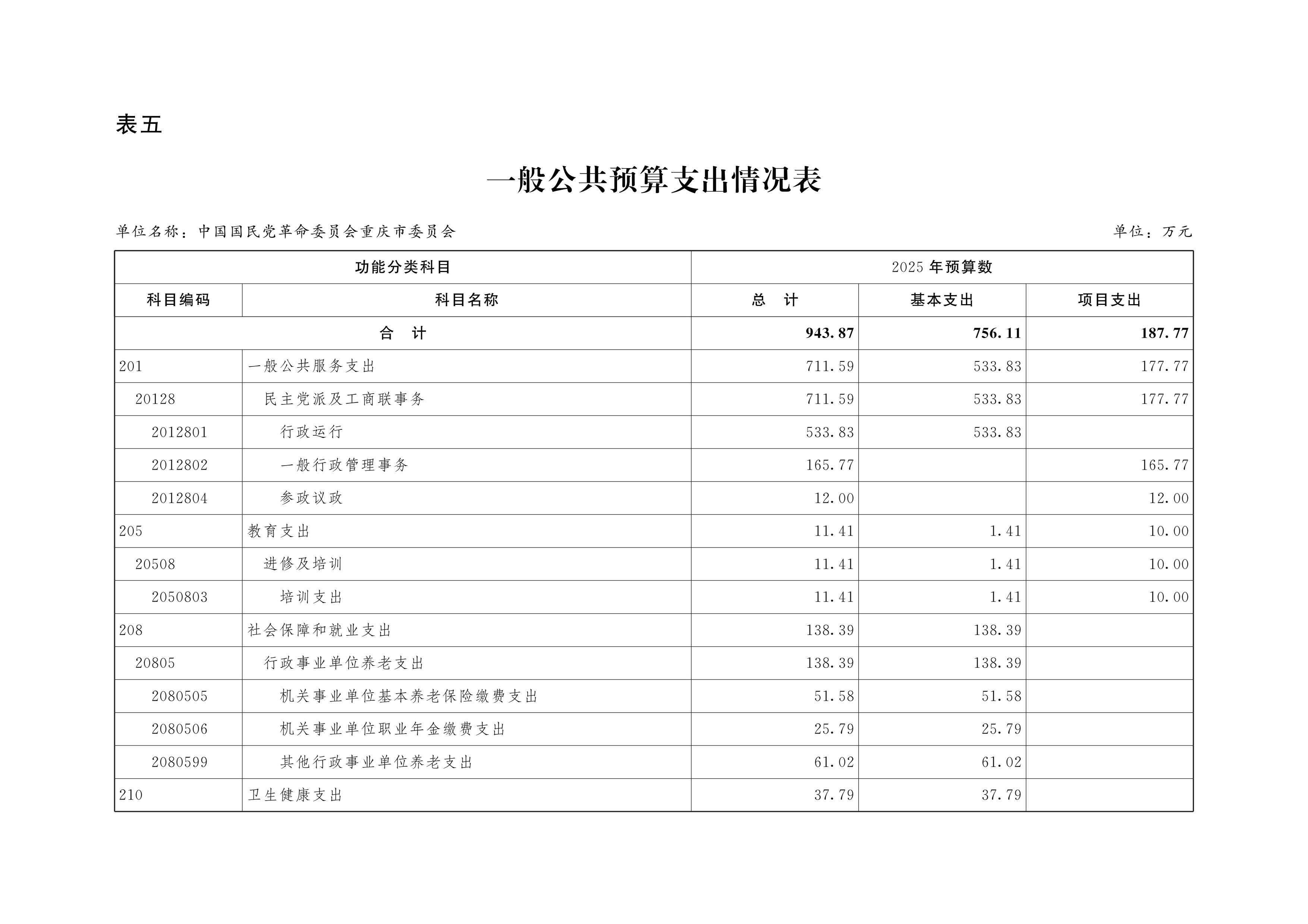2025年民革市委部门预算